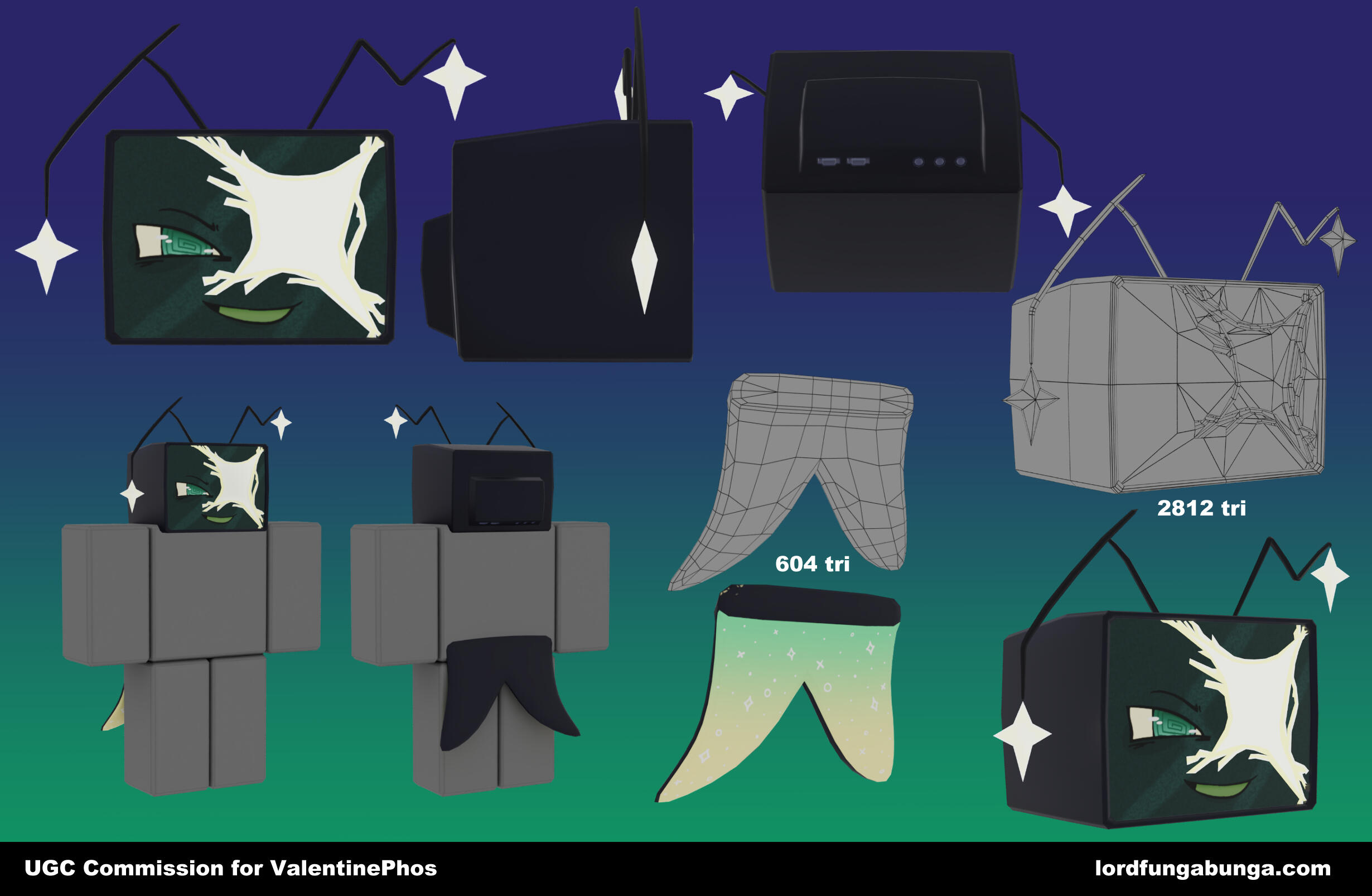 This is only for personal UGC accessory commissions! Please contact me directly if you're interested in commercial work or something else.UGC will be uploaded to my account, LordFungaBunga. Commissioners can buy it from there and it will be kept off sale after its bought, I'm okay with turning it on and off sale when needed.